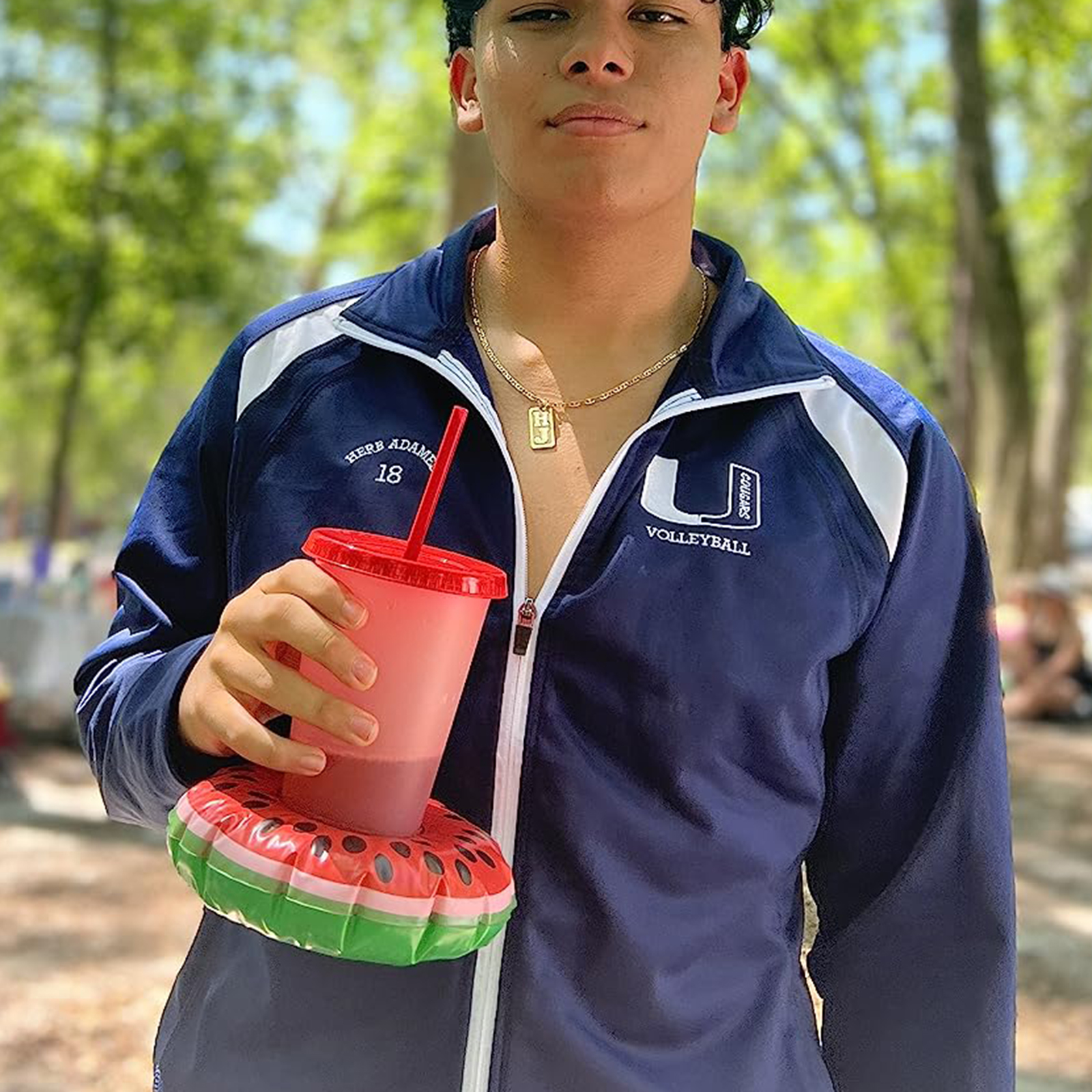 - Floaties Material: Pool cup holder is made of PVC plastic, which can hold 12-15 oz drinks, can't be too big of a cup or it will fall over.